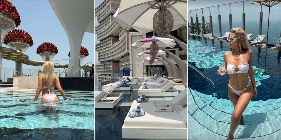 IZNAD NIVOA BAZENA CRVENE RUŽE, A ZA NOĆNO KUPANJE "VODENI VATROMET" Beli kupaći samo što ne pukne zbog oblina Snežane Borjan u Dubaiju: Ne postoji ništa luksuznije od ovoga