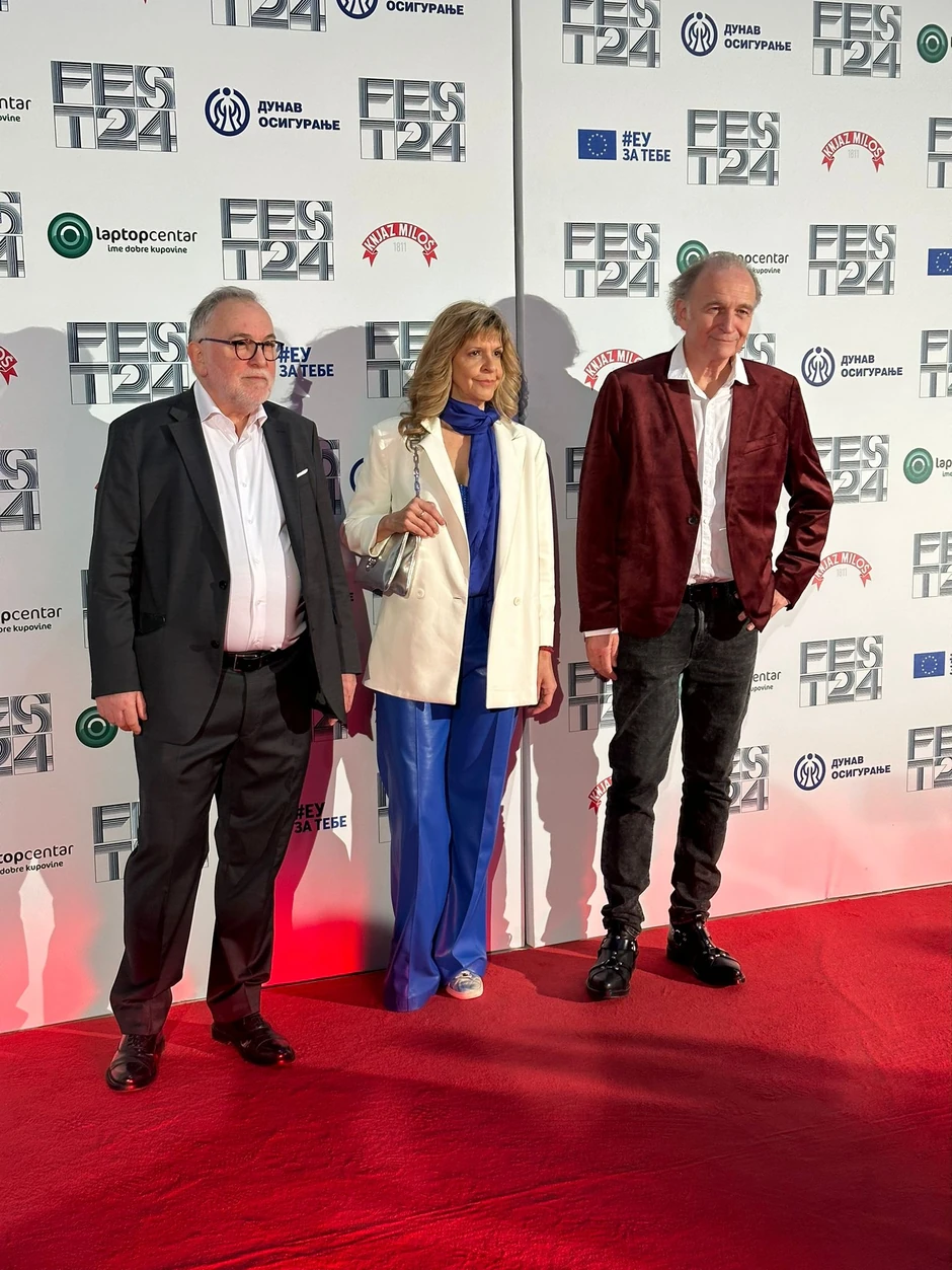 Anita je u plavom kompletu pozirala pred kamerama sa poznatim glumcima, a u pratnji supruge i ministarke za rudarstvo i energetiku Dubravke Đedović, stigao je i kompozitro Damir Handanović.