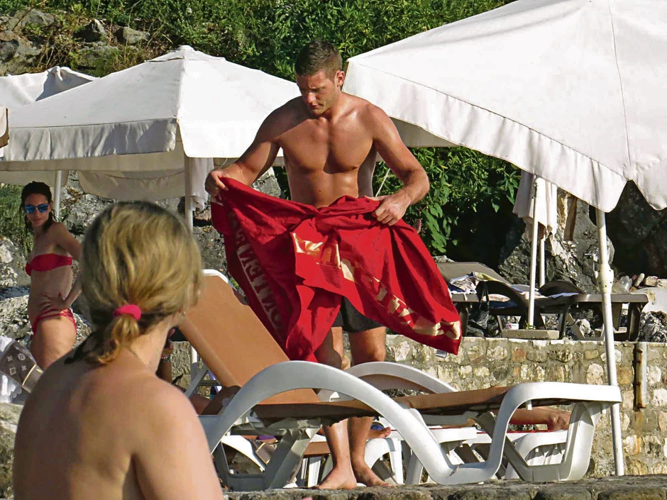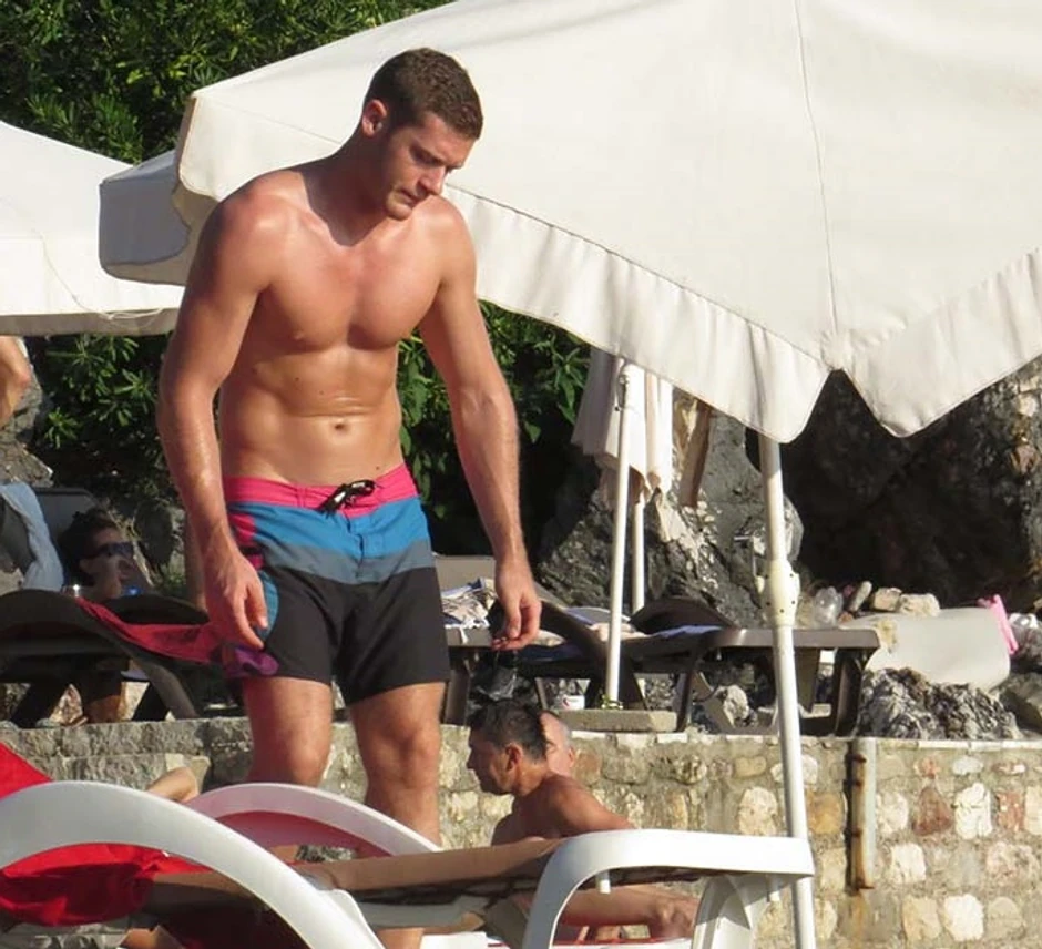 Glumac Aleksandar Radojičić (28) ponosno šeta mišiće, a njegovi bicepsi i zategnut stomak privukli su znatiželjne poglede dama na plaži Kamenovo u Crnoj Gori.