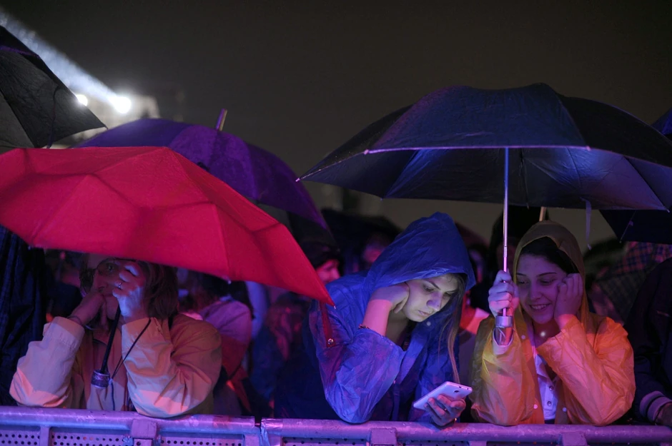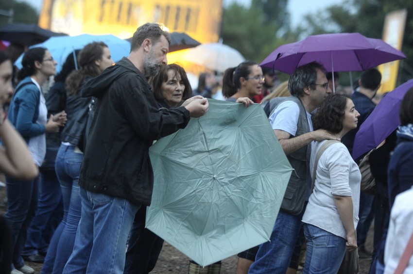 Uprkos dosadnoj, ali sitnoj kiši, publika se i dalje okuplja u velikom broju.