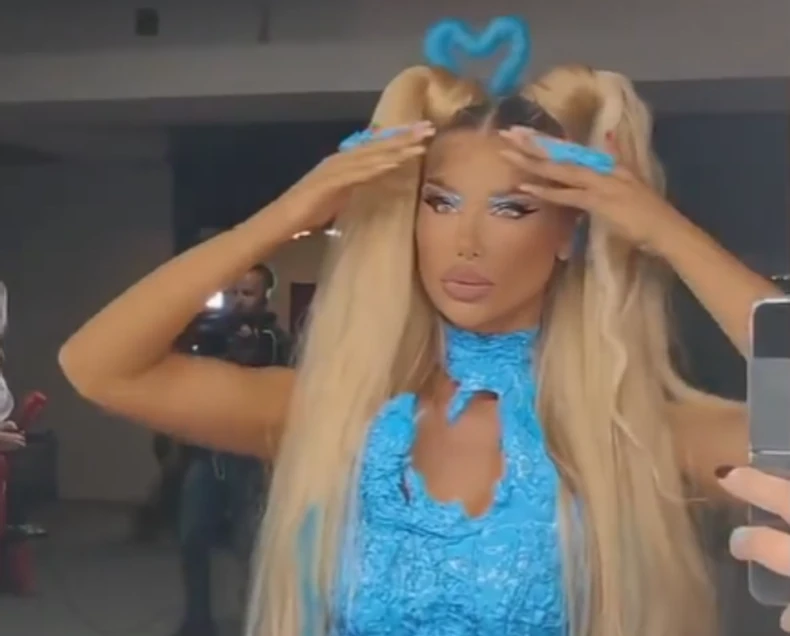 Pevačica je, naime, pozirala u plavom kostimu, sa nesvakidašnjom frizurom, dok je mnogi u objavama nisu prepoznali.