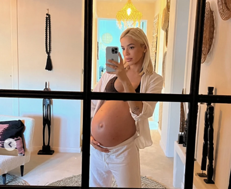 Influenserka Jovana Jocić na svom Instagramu je podelila fotografije na kojima je pozirala u lanenim pantalonama i otkopčanoj košulji ispod koje je imala samo gornji deo bikinija, te je njen trudnički stomak došao u prvi plan.