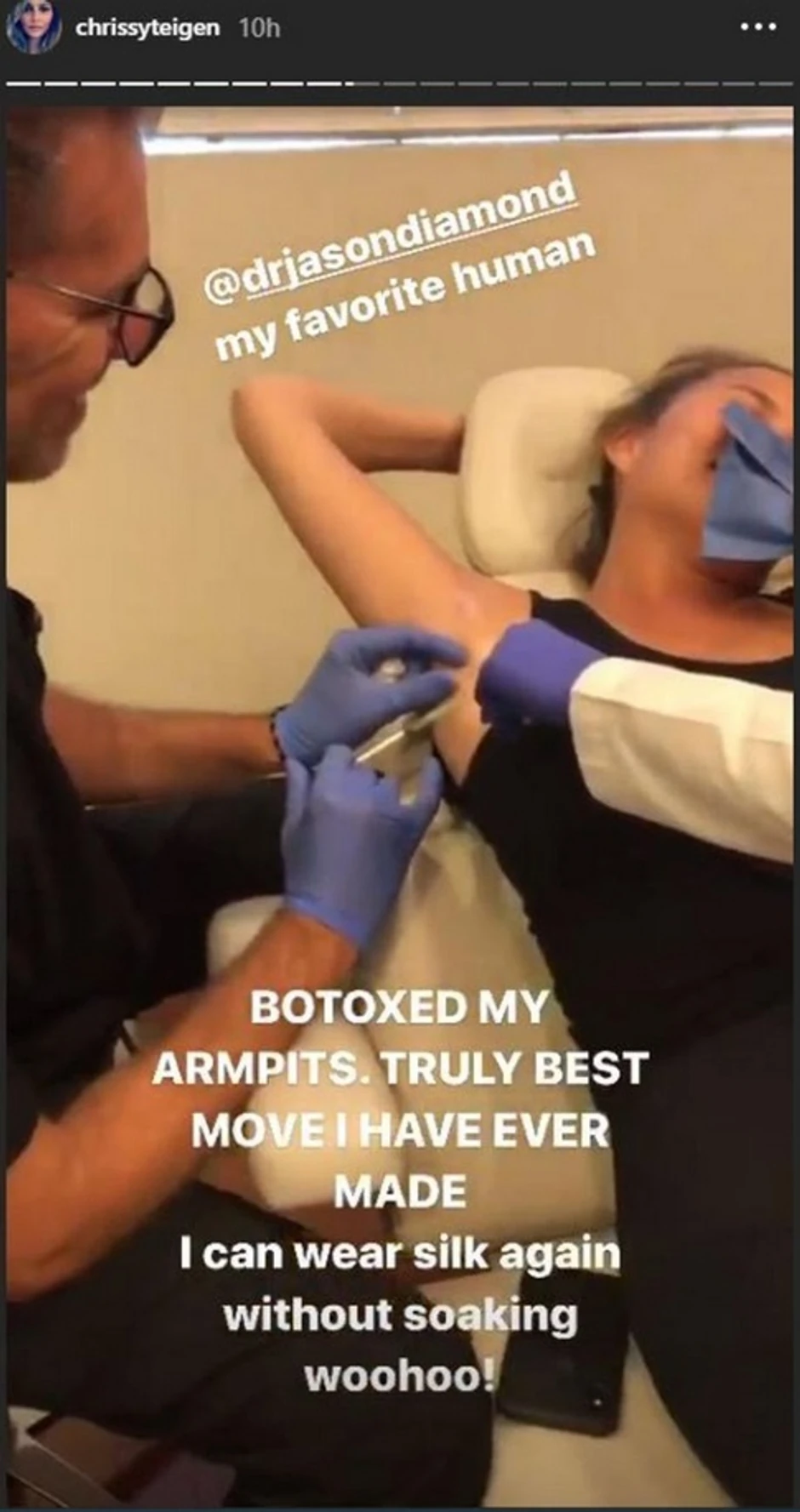 Supruga pevača Džona Ledženda, manekenka Krisi Tajgen otišla je ubrizgavanje botoksa u pazuh kako bi rešila problem prekomernog znojenja. Ona je odlučila da pokaže kako izgleda ceo proces ubrizgavanja botoksa i istakla da joj je to najbolji korak na koji se odlučila.