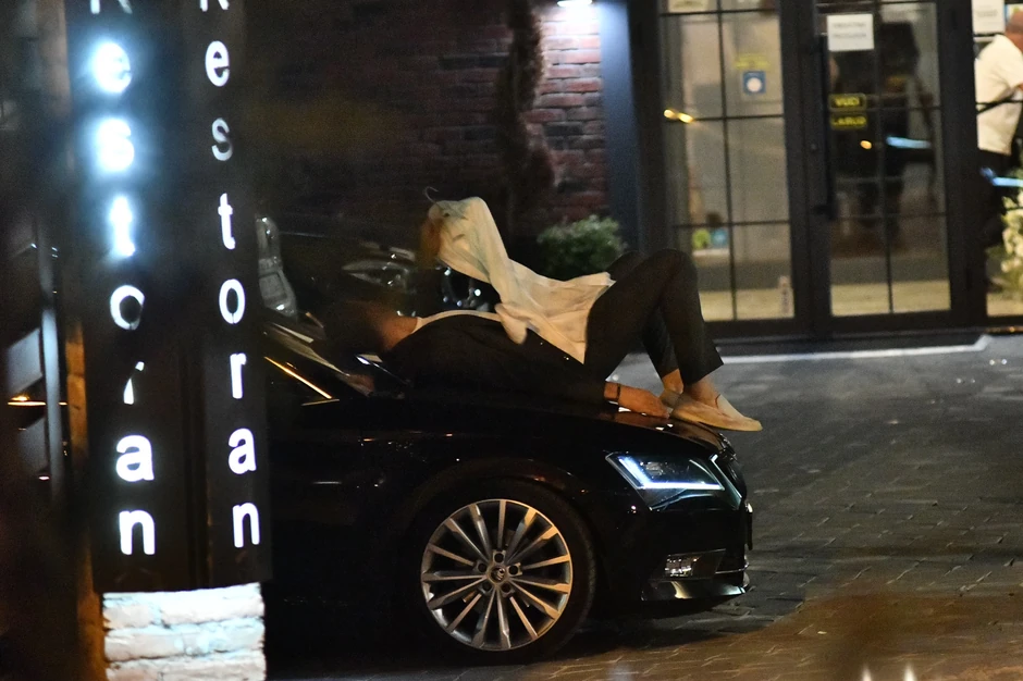 Hit scene možete pogledati na slikama koje se nalaze u okviru teksta, a očigledno je da je Bogdan nakon gala slavlja morao malo da odmori, pa je to uradio tako što se opružio na haubi.