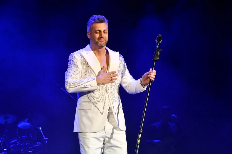 Ono što je, pored dobre enegrije, bilo posebno upečatljivo jeste pevačev stajling. Naime, Bojan se pojavio u belom odelu, pantalonama i sakou, a gornji deo njegove odevne kombinacije u potpunosti je bio prekriven cirkonima.