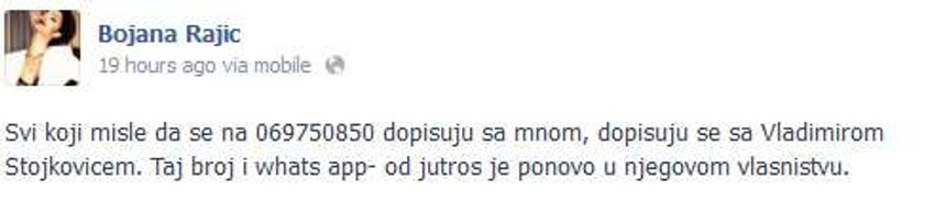 Razvod Vladimira i Bojane Stojković nastavlja da puni novine. Golman je svojoj uskoro bivšoj ženi oduzeo mobilni telefon, jer se vodi na njegovo ime.