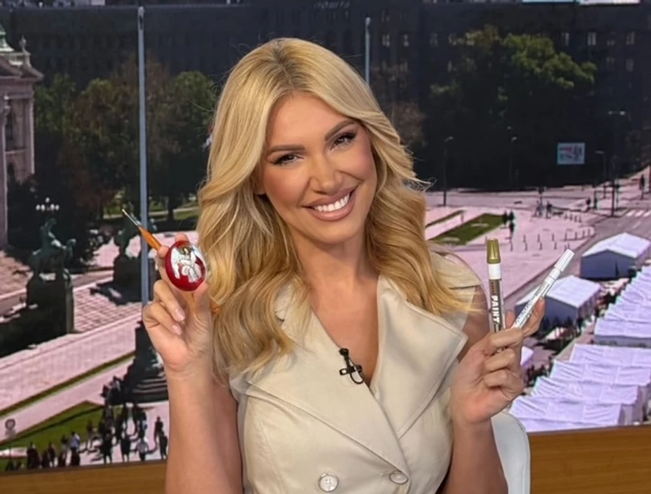 Svojim umećem pohvalila se i voditeljka Bojana Ristovojević, koja je u pauzu za reklame u studiju oslikala svoje jaje u crvenoj boji.