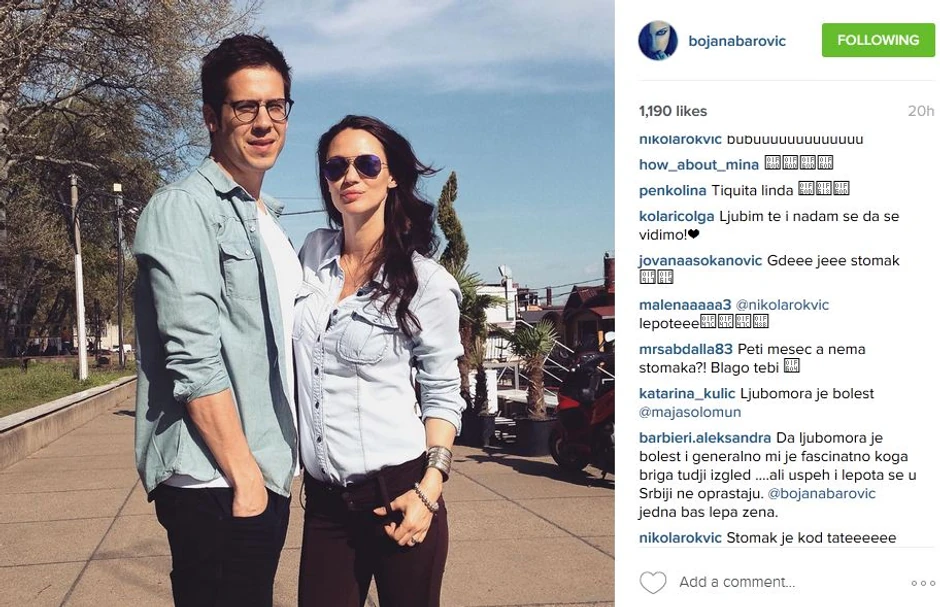 - Peti mesec provodimo u Beogradu i izgleda da smo doneli lepo vreme sa sobom - napisala je manekenka uz fotku na Instagramu, te privukla veliki broj lajkova i komplimenata na račun svog izgleda u trudnoći. Ipak, bilo je i onih kojima se nije dopalo to što se Bojani uopšte ne vidi trudnički stomak.