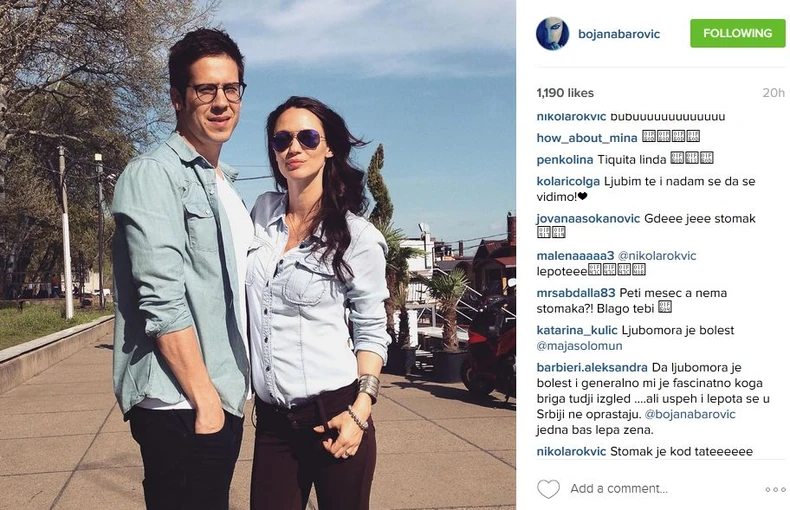 Bojana Barović i Nikola Rokvić trudničke dane provode u Beogradu. Bojana je u petom mesecu trudnoće i izgleda nikada lepše. Vitka i zavodljiva uživa u trudnoći a u šetnji joj naravno društvo pravi Nikola.