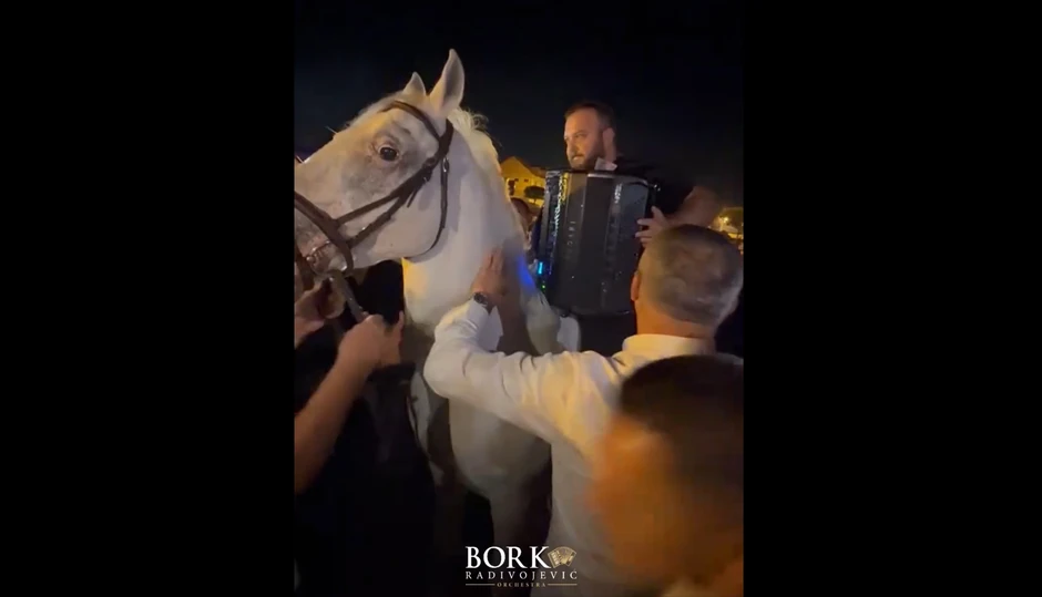 Na društvenim mrežama pojavio se snimak koji je za kratko vreme postao pravi hit. Jedan od naših najpoznatijih muzičar Borko Radivojević tokom jedne svadbe u Surčinu doživeo je nesvakidašnji trenutak kada su ga gosti naterali da se popenje na belog konja i zasvira harmoniku.
