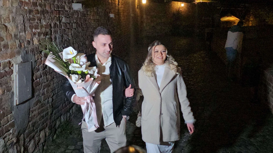 Nemanja je sve vreme držao svoju lepšu polovinu za ruku, a u drugoj ruci je nosio veliki buket cveća.