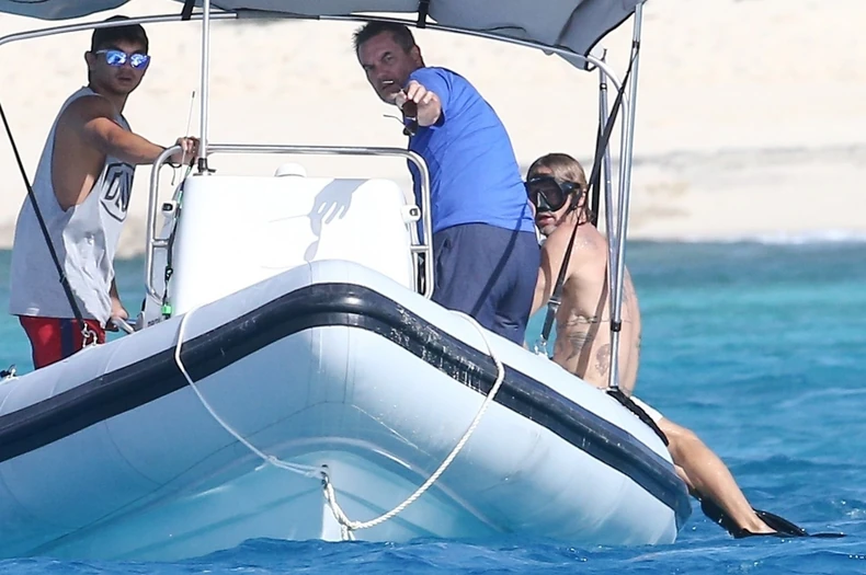 Naime, Breda i njegovog prijatelja Flia (58), koji je gitarista u muzičkom bendu "Red Hot Chilli Peppers", paparaco je uhvatio dok su bili na odmoru na ostrvima Turks i Kaikos, gde su dočekali Novu godinu.