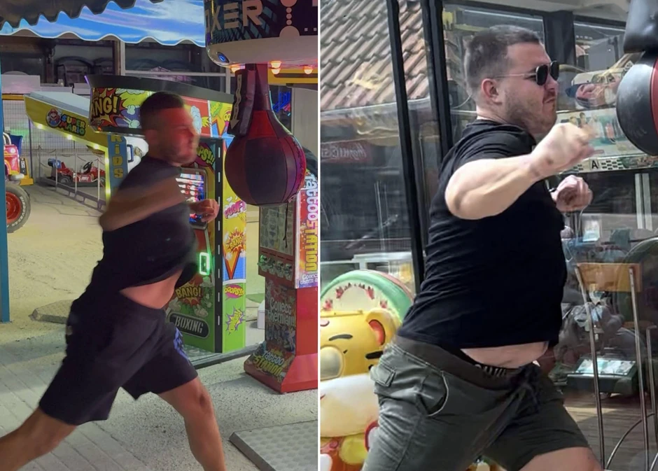 Viktor se slikao kako demonstrira jačinu u luna parku udarajući bokser, iliti krušku za udaranje, a primetna je velika razlika u izgledu.