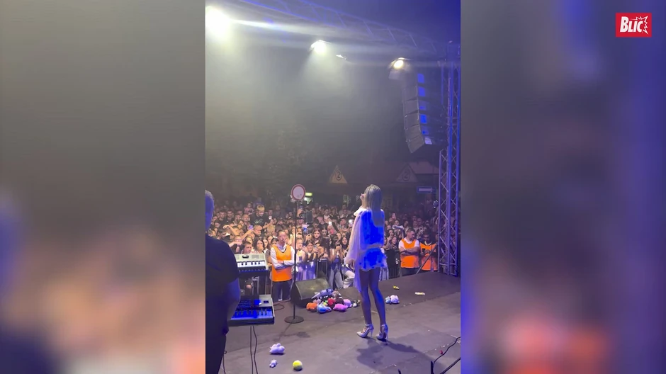 Naime, Breskvica je više od dva sata uživala sa publikom, a tom prilikom sve vreme su joj bacali poklone na binu.