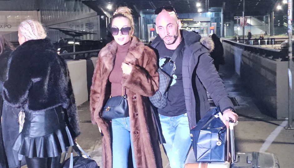 Pevačica je nosila bundu do poda i bila sa naočarima na licu, dok je Ivan nosio kofere.