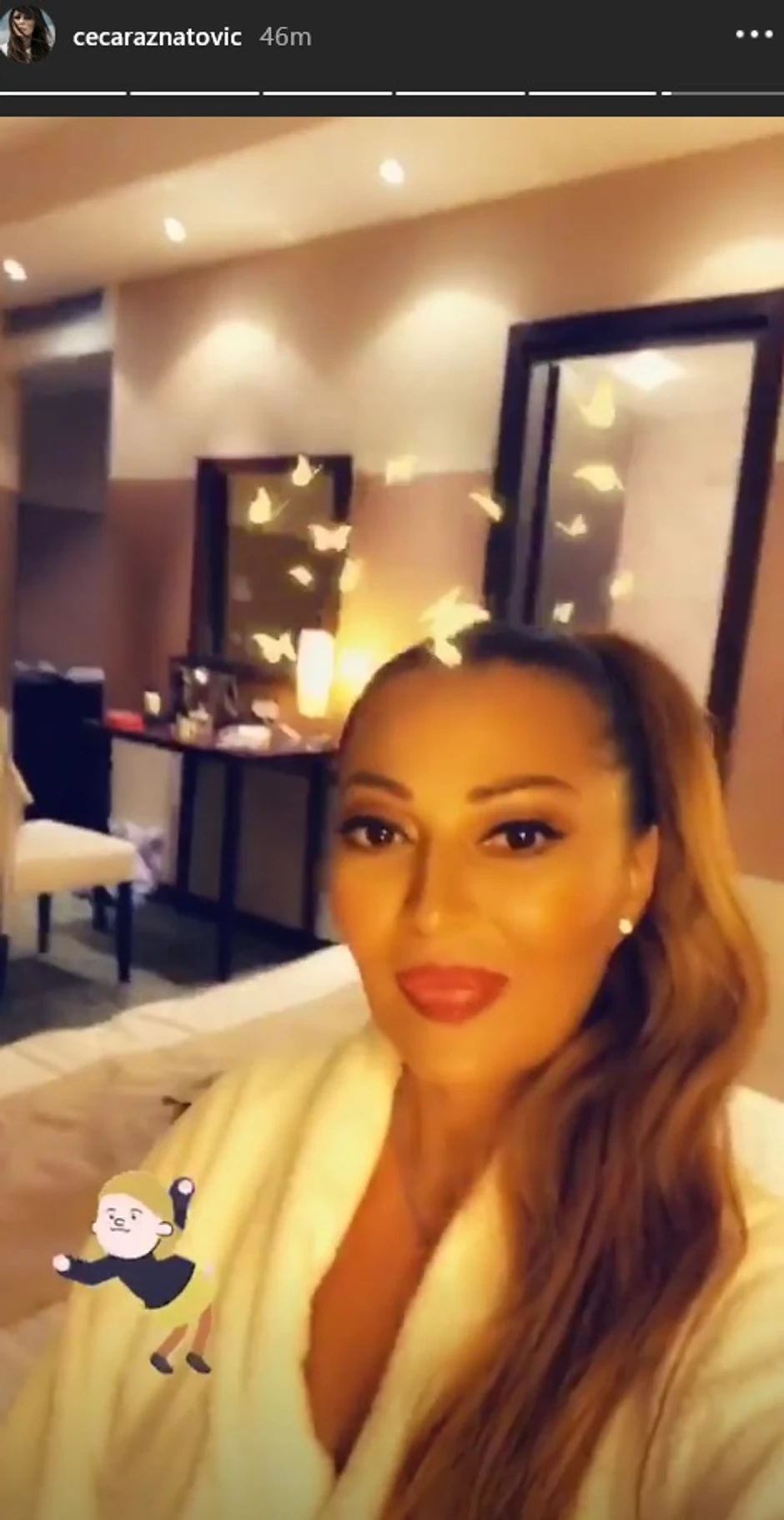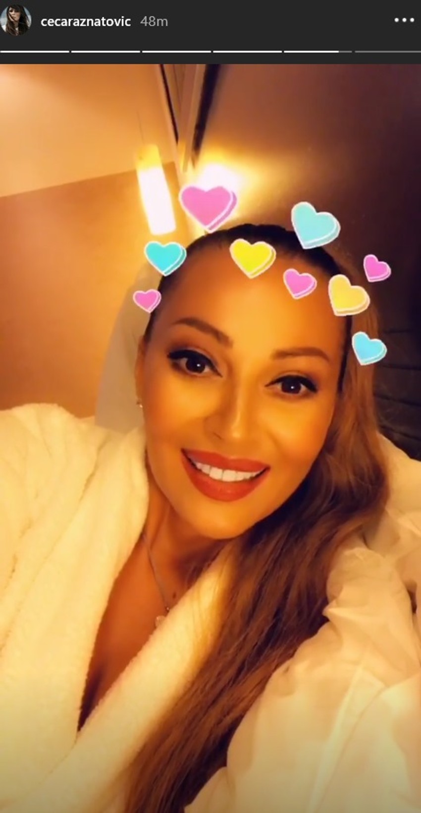 Ceca Ražnatović je pozirala nasmejana, a odlučila je da sa svima podeli trenutke dok boravi u hotelskoj sobi.