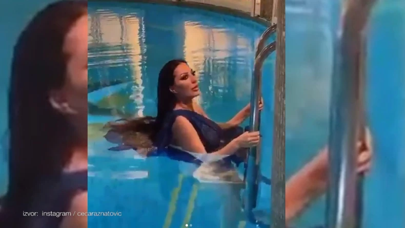 Naime, Ceca je pozirala u plavoj haljini u bezenu, perfektno našminkana, sa puštenom dugom crnom kosom.