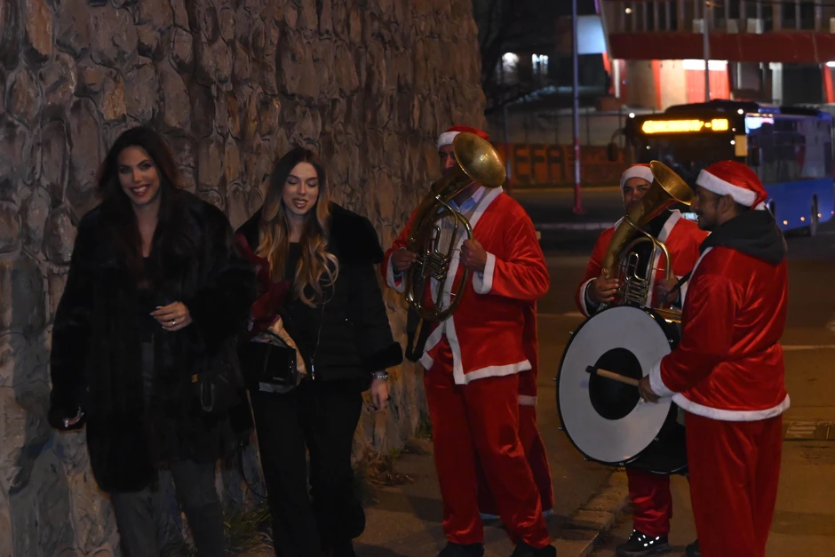 Naime, trubači u kostimima Deda Mraza okupili su se ispred Cecine velelepne vile i uz muziku dočekuju goste.