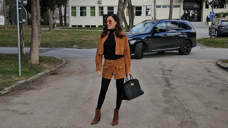 Ispod sakoa je obukla crnu rolku, a kratke braon čizmice su se savršeno uklopile u njenu odevnu kombinaciju.