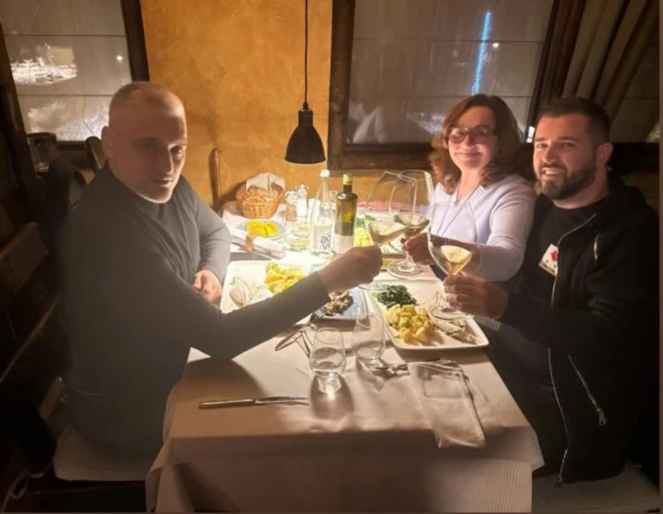Čeda i društvo poručili su za stolom ribu i vino, a zajedno su na ovaj način obeležili kraj godine.