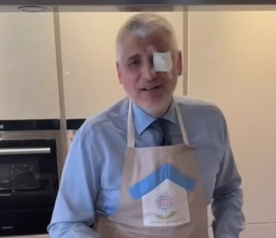 Političar Čeda Jovanović usnimio se dok je spremao hranu u kuhinji, a kako je jasno moglo da se vidi, povredio je oko, te preko njega ima zavoj.