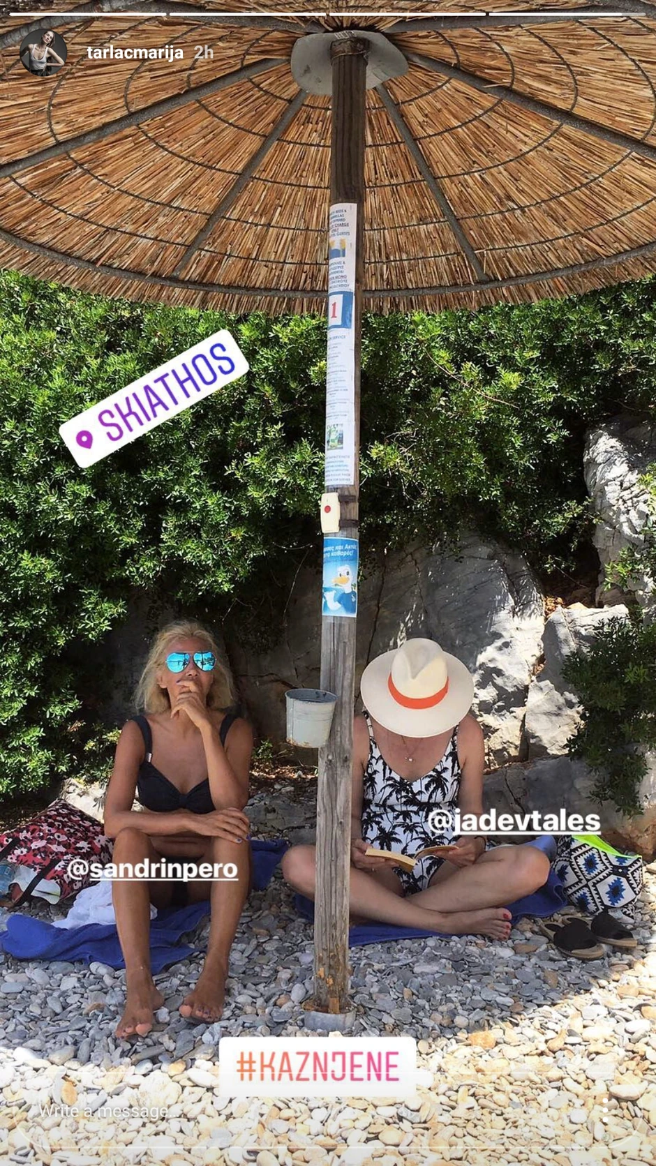 Na fotografiji se vidi kako se u društvu svoje drugarice odmara na plaži na jednom grčkom ostrvu. U potpunosti je posvećena odmoru pa je zaboravila na sve ono što život ispred kamera čini možda napornijim ili težim.