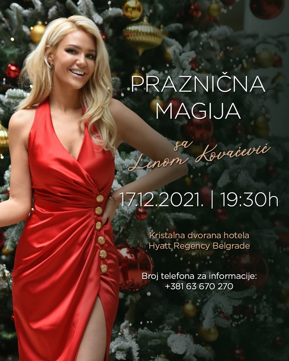 Hotel "Hyatt Regency Beograd" organizuje koncert Lene Kovačević 17.12.2021. godine sa početkom u 19:30 časova pod nazivom „Praznična magija sa Lenom Kovačević”.