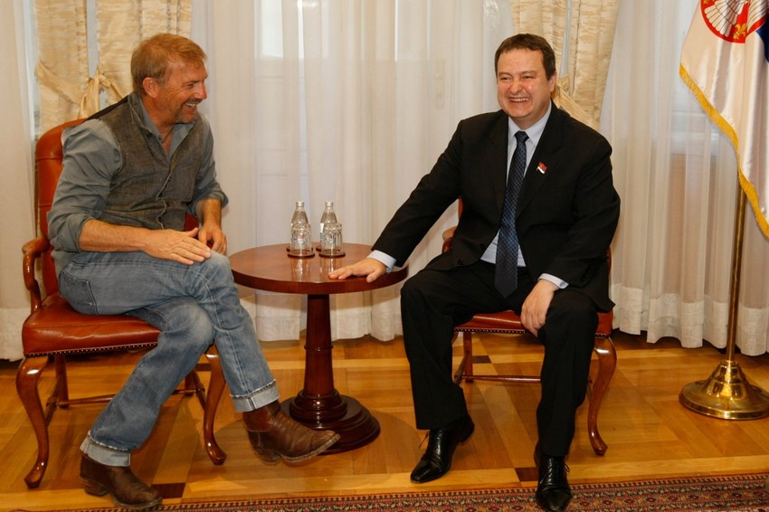 Ivica Dačić upoznao se danas sa Kevinom Kostnerom koji u Beogradu snima film "Tri dana za ubijanje".