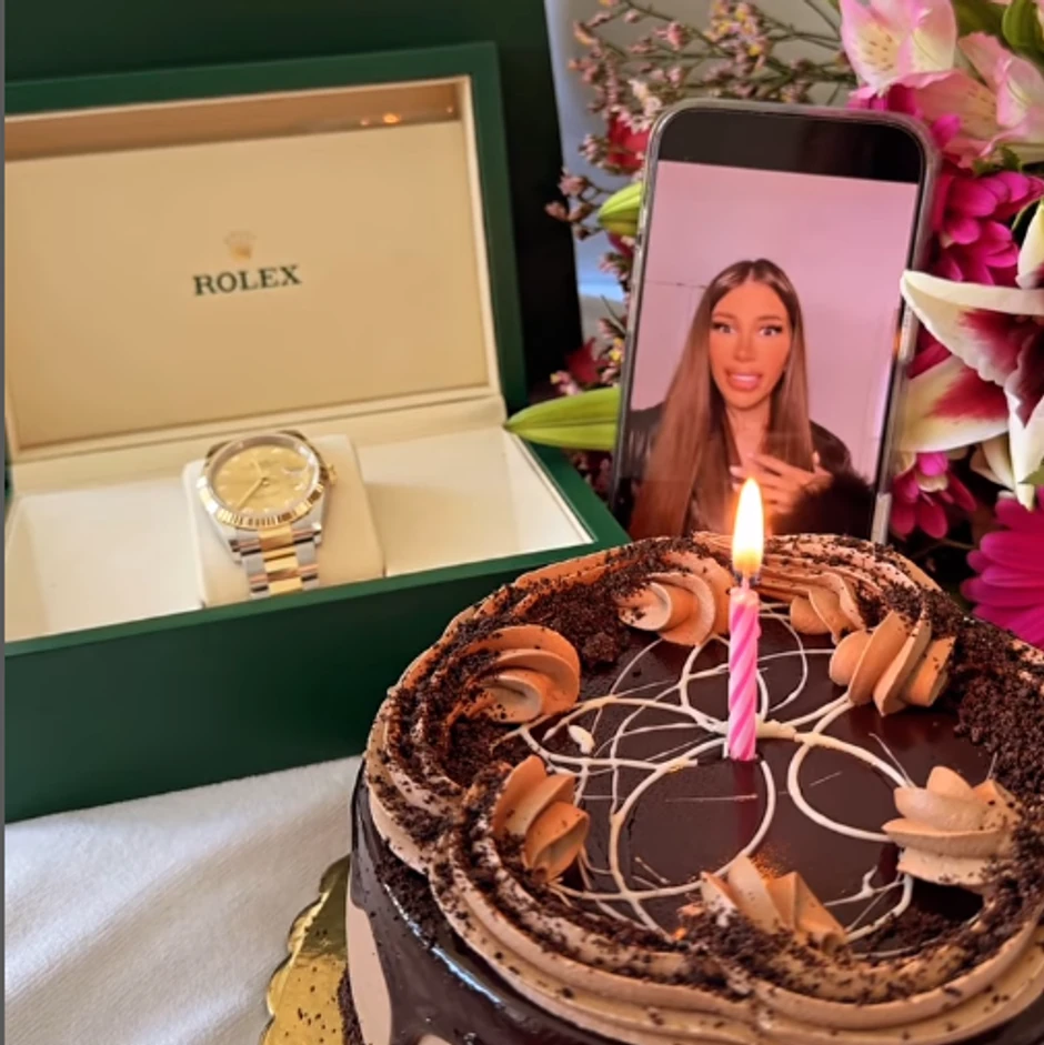 Ona je podelila snimak sa čokoladnom tortom na kojoj je ispisano "Srećan rođendan", ali i pokazala da je za divan dan dobila Rolex sat.