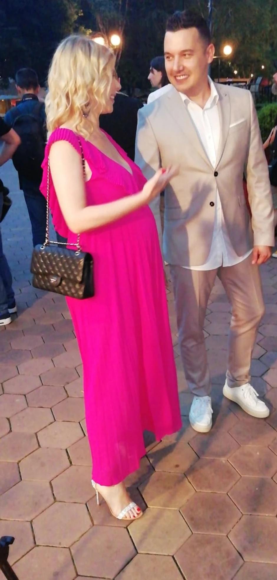 Danijela se pojavila u pink toaleti, dok je Ivan poneo sivo odelo, a Karićevoj se ocrtavao trudnički stomak, što je bilo oduševilo sve.