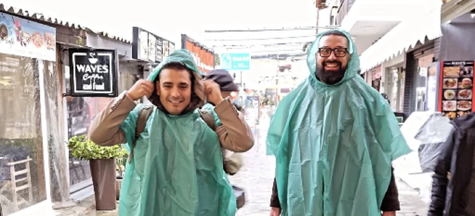 Lazić se slikao sa kolegom Sašom Kaporom, a obojica su imali kišne kabanice na sebi.