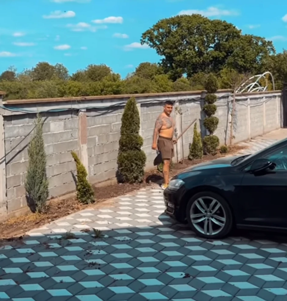 Pevač Darko Lazić uveliko sređuje svoju kuću u selu Brestač, koja se nalazio tik do stare porodične, a sada ga je supruga Katarina snimila dok je sadio biljke.