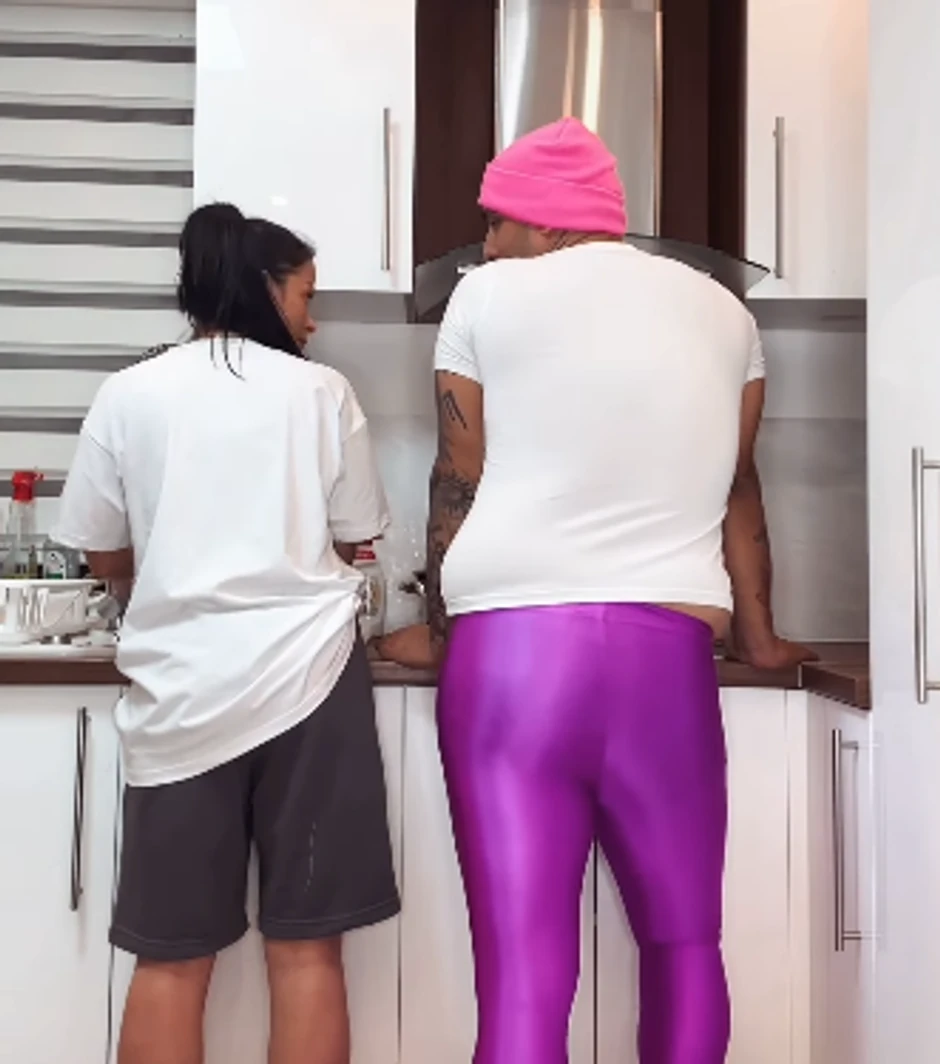 Sada su se zamenili garderobe, Darko je obukao ženine roze helanke, a ona njegov šorts i majicu.