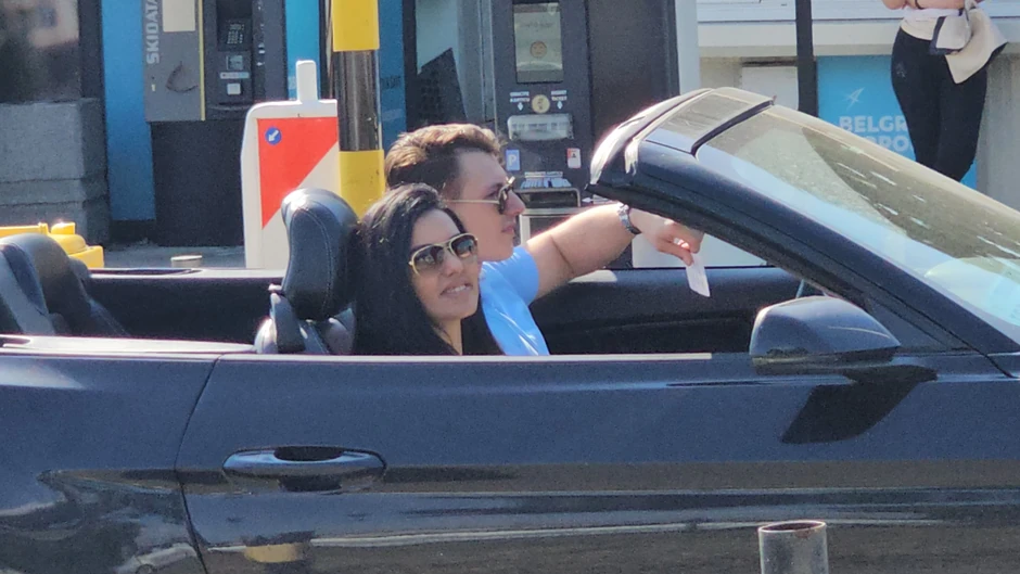 Tanju i Mukija naše fotoreporeti uslikali su na aerodromu u Beogradu, a najviše pažnje privukla je besna mašina koju vozi pevačicin dečko.