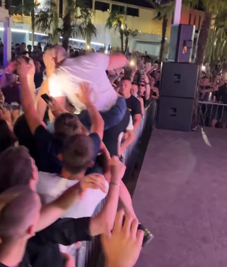 Na poslednjem koncertu, Desingerica je ponovo privukao pažnju svojim nekonvencionalnim ponašanjem. Na snimcima koji kruže društvenim mrežama, vidi se kako se zaleće na publiku u prvim redovima, dok ga fanovi grle, hvataju za noge i vrište od uzbuđenja. U jednom trenutku, tinejdžer iz publike izlazi na binu i počinje da radi sklekove, a Desingerica mu stavlja nogu na leđa. Nakon toga, reper ga podiže u naručje i zajedno izvode čučnjeve.