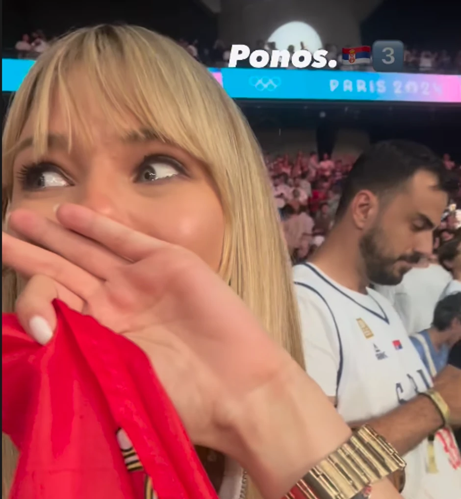 Prelepa Tiana Šumaković bila je na tribinama kad je Srbija odnela pobedu protiv Australije i snimila emotivan trenutak. Ona je i zaplakala, a sve vreme je držala srpsku zastavu.