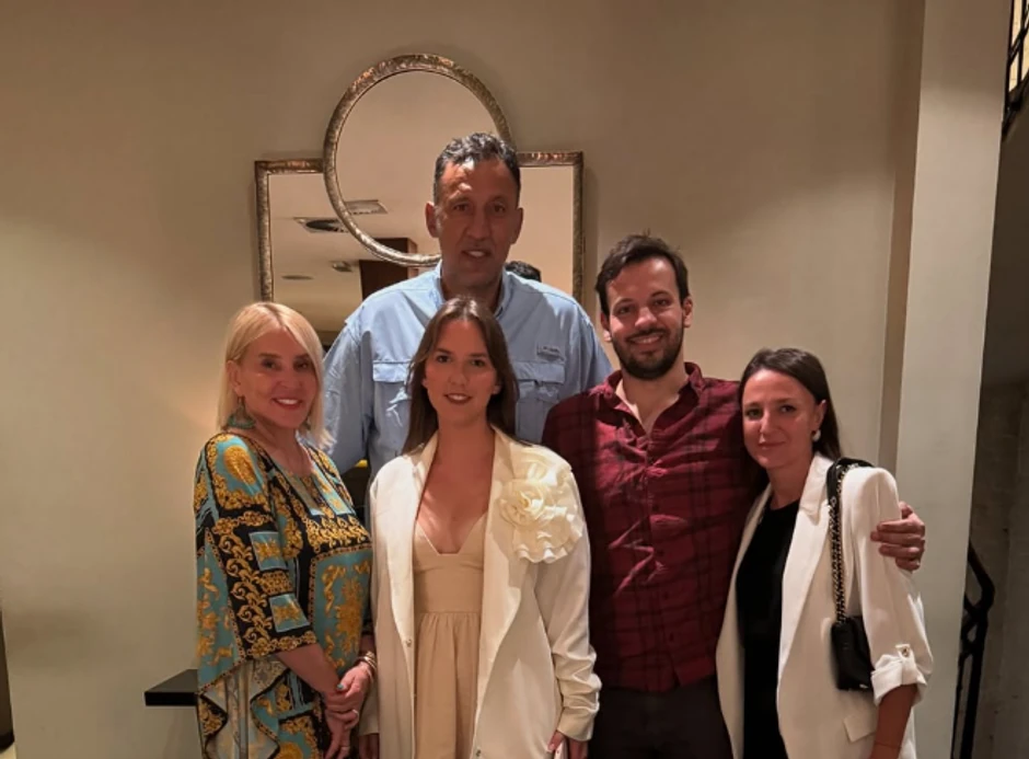 Žena Ana bila je u prvom planu u šarenoj haljini, dok se ćerka Petra skockala u lepršavoj beloj haljini, a dole je imala visoke platforme. Odmah pored Divca u crvenoj košulji stajao je sin Luka i svi su zajedno pozirali nasmejani.