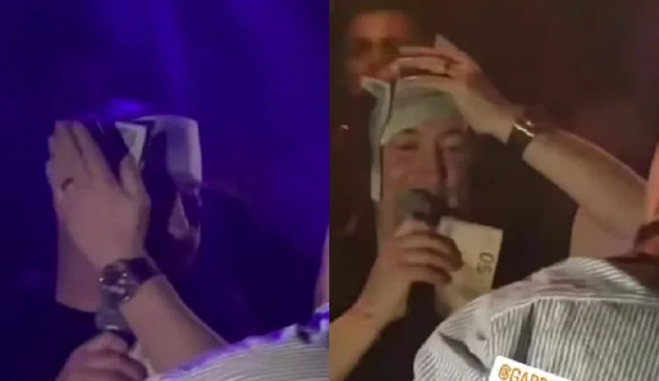 Naime, na sinoćnom nastupu prišao mu je jedan od gostiju i počeo da lepi novčanice po licu i glavi, a kako su spadale folker mu je pripomogao i zalepio ih sam toliko da su mu se na kraju samo oči videle.