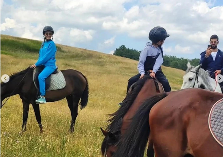 Nole, Jelena i Stefan samostalnu su jahali, dok je mala Tara bila na belom, poniju sa vodičem.