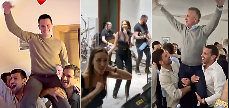 Porodica i prijatelji su se okupili u vikendici, a Đokovići su bili najveseliji. Pevali su, igrali, Novak je bratu pocepao majicu, a onda je usledio i vatromet koji je video ceo grad.