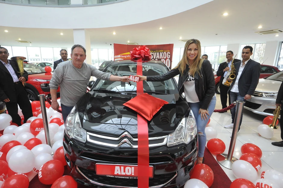 Uz trubače i "Marakanu" Rada Manojlović uručila je srećnom dobitniku Slobodanu Pajiću ključeve novog "Sitroena" koji je osvojio u Velikoj nagradnoj igri Alo!