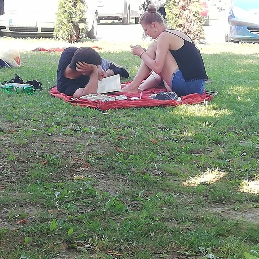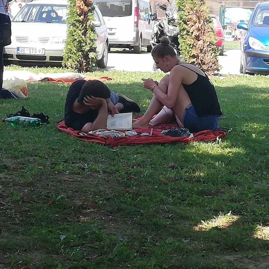 Naime, on je raširio ćebence, legao i latio se knjige, dok je pored njega sedela devojka.