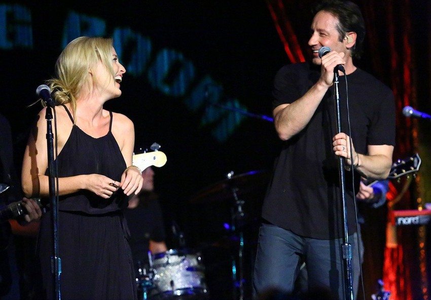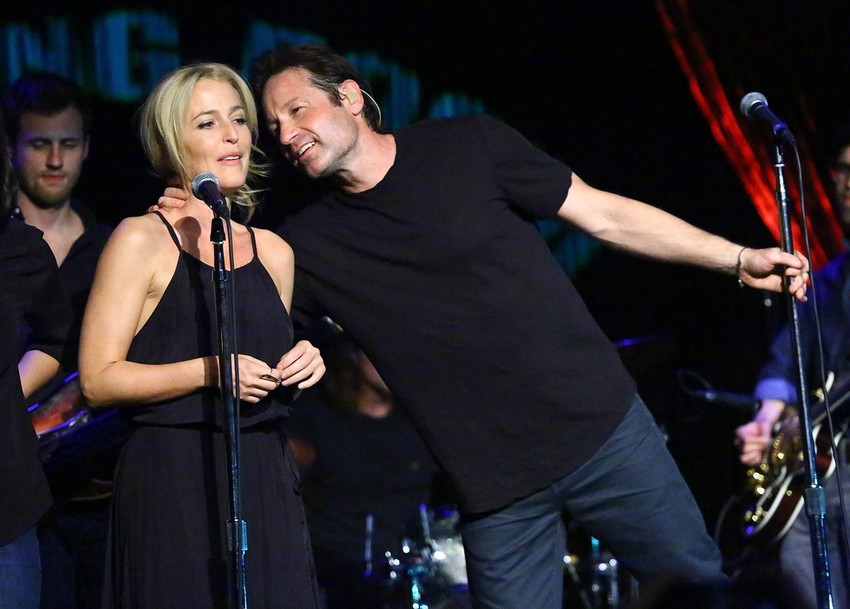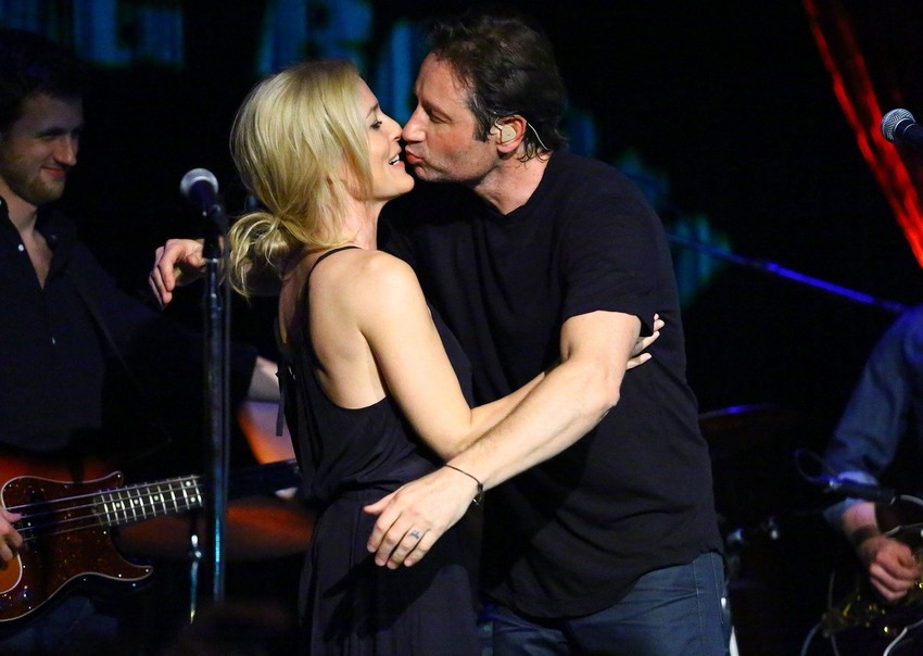 Taman što su se fanovi kultne serije "Dosije Iks" smirili posle vesti da se snima novih šest epizoda, Molder i Skali su im raspalili maštu tako što su razmenjivali nežnosti na bini. I ti poljupci nisu bili za potrebe snimanja.