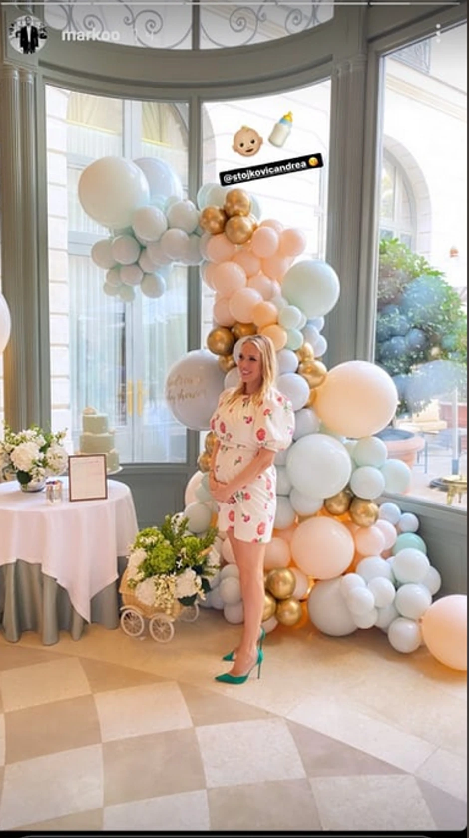 Buduća mama, nosila je preslatku žutu haljinu i zelene štikle. Tu su bili i baloni u plavoj i roze boji, na meniju riba i pilo se belo vino.