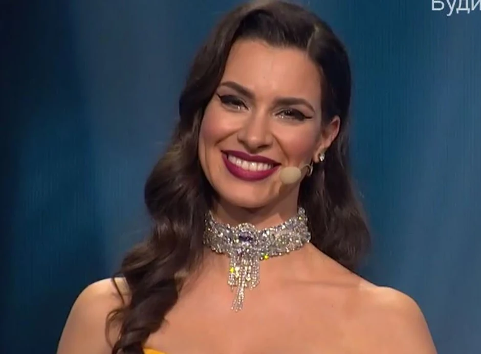 Dragana je ponela prelepu ogrlicu oko vrata, dok je kosu pustila da joj pada preko ramena, a pored nje na bini bio je i voditelj Jovan Radomir.