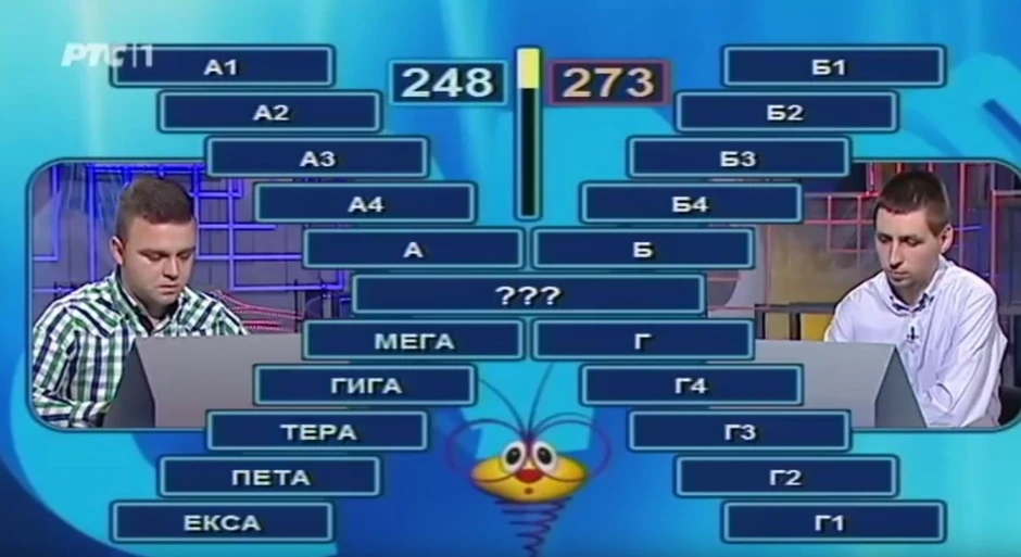 Takmičar koji se našao na "plavoj" poziciji pred sobom je imao tri pogođene kolone u kojima je pisalo "Antonije", "Mega" i "Požega". Kao konačno rešenje je predložio "Antonije Pušić". Ipak, to nije prihvaćeno kao tačan odgovor.