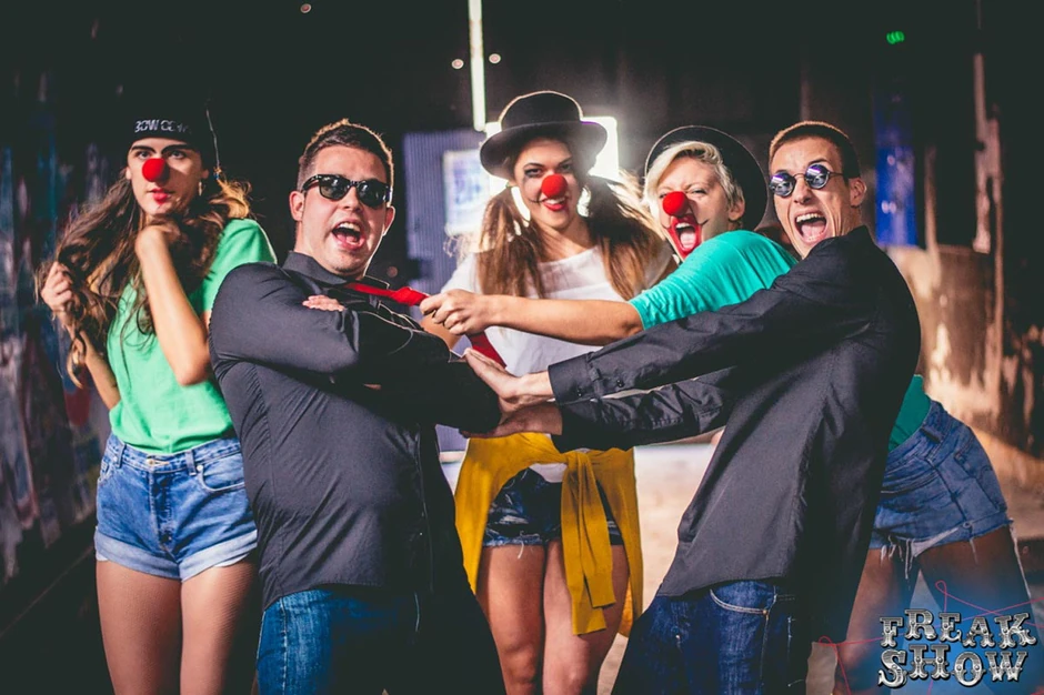 Posetioce velikog interaktivnog party pozorišta očekuju raznovrsno kostimirani „frikovi”- žongleri, vazdušne akrobate, plesači, animatori, gutači vatre i razni drugi zabavljači. Specijalni gost velikog bala pod maskama biće MC Drakula, dok će se devojke iz regeton plesne škole Bow Down pojaviti kao sexy klovnice. Mađioničar će nam pokazati kako se beli zeka pojavljuje iz praznog šešira, dok se dancehall plesna ekipa Bojane Tasov, Spice it up crew, priprema da u potpunosti oduševi publiku Freak Show-a. Na najvećem maskenbalu koji nas očekuje za Noć veštica, Goran Filipović, poznati imitator kralja pop muzike Michael Jackson-a, izvešće jednu od njegovih legendarnih pesama.