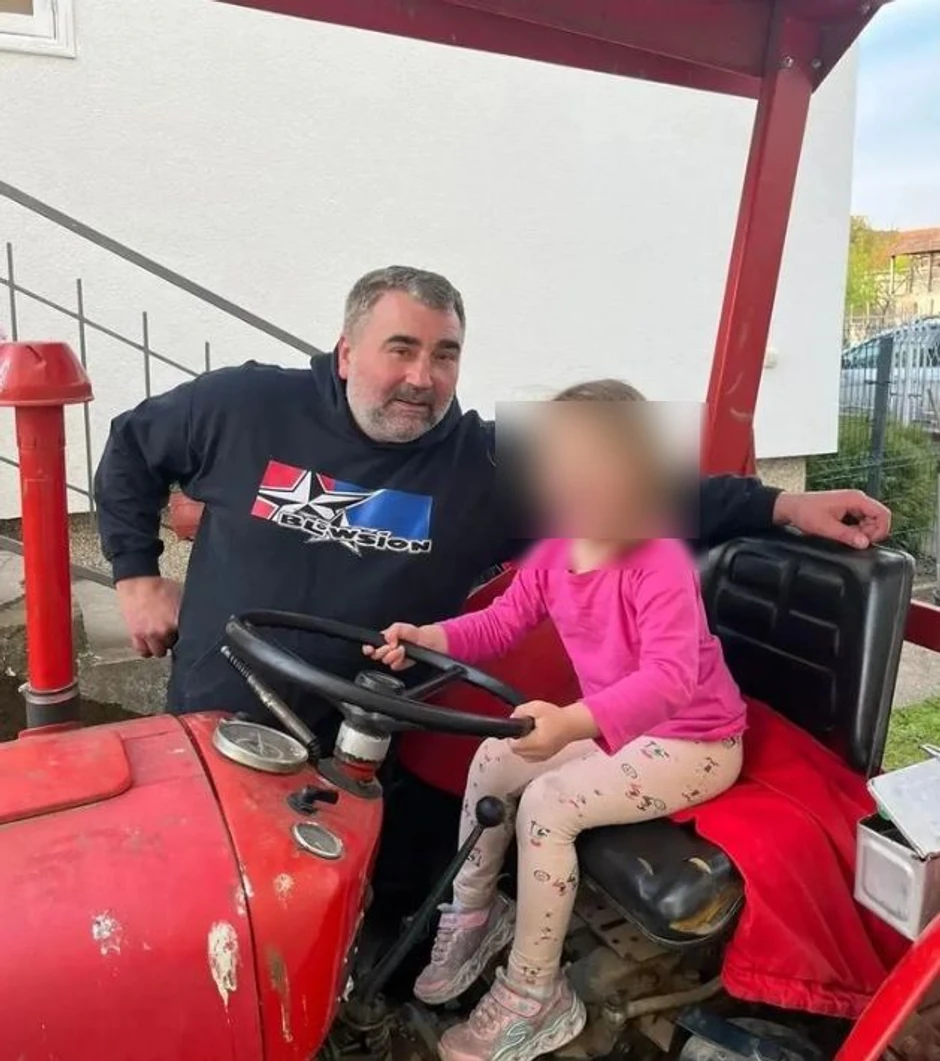 Tako i danas malu Dunju "učio" da vozi traktor, što je malenu devojčicu očigledno oduševilo te osmeh nije skidala sa lica.