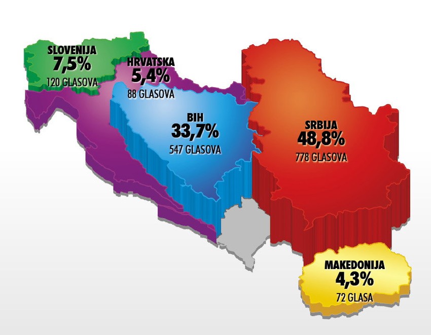 U anketi na Blic.rs, očekivano, pesma Kristine Kovač za Ninu Radojičić dobila je 778 glasova, a pesma Dina Merlina 547. Ostale eks-Ju republike, sudeći po našoj anketi, nemaju pesme koje mogu do finala.