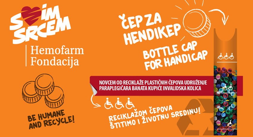 Akcija "Čep za hendikep" ima za cilj prikupljanje plastičnih čepova kako bi se novcem od reciklaže obezbedila nabavka invalidskih kolica i ortopedskih pomagala osobama sa invaliditetom.
